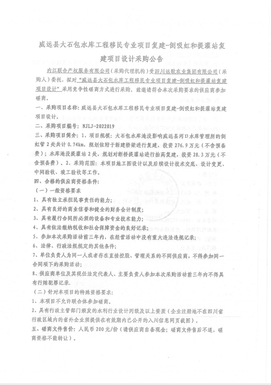 威远县大石包水库工程移民专业项目复建-倒吸虹和提灌站复建项目设计
