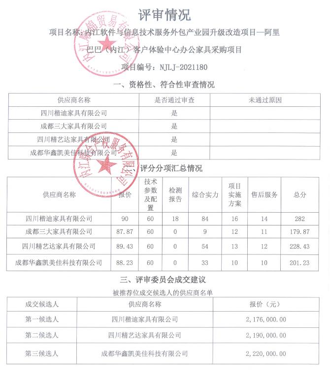 内江软件与信息技术服务外包产业园升级改造项目—阿里巴巴(内江)客户体验中心办公家具采购项目结果公告