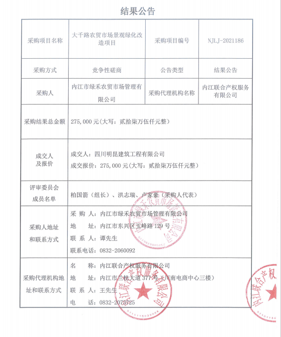 大千路农贸市场景观绿化改造项目结果公告