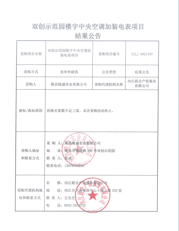 双创示范园楼宇中央空调加装电表项目结果公告
