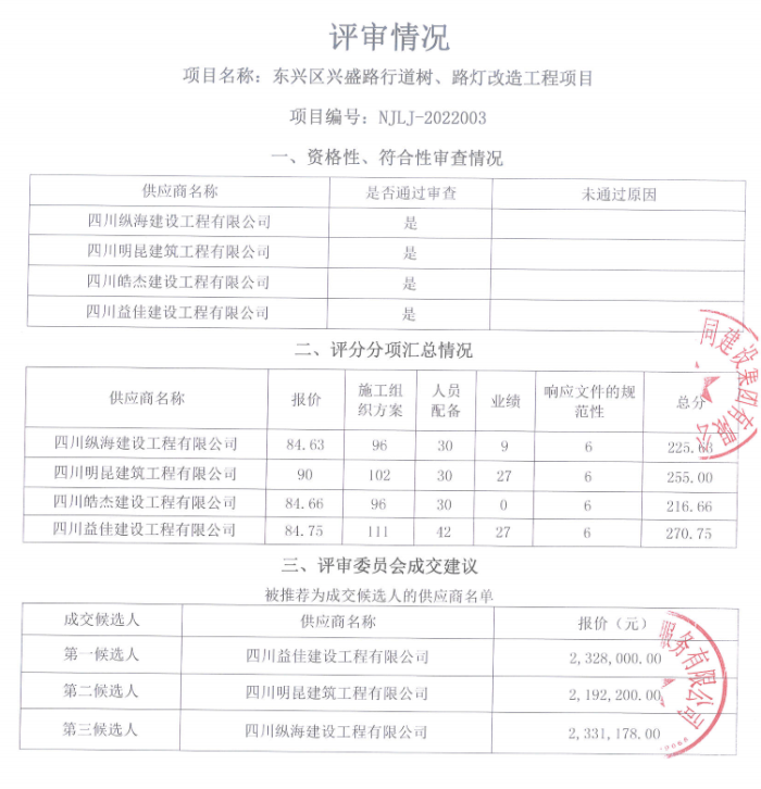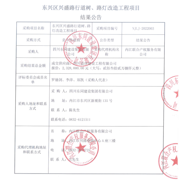 东兴区兴盛路行道树、路灯改造工程项目结果公告