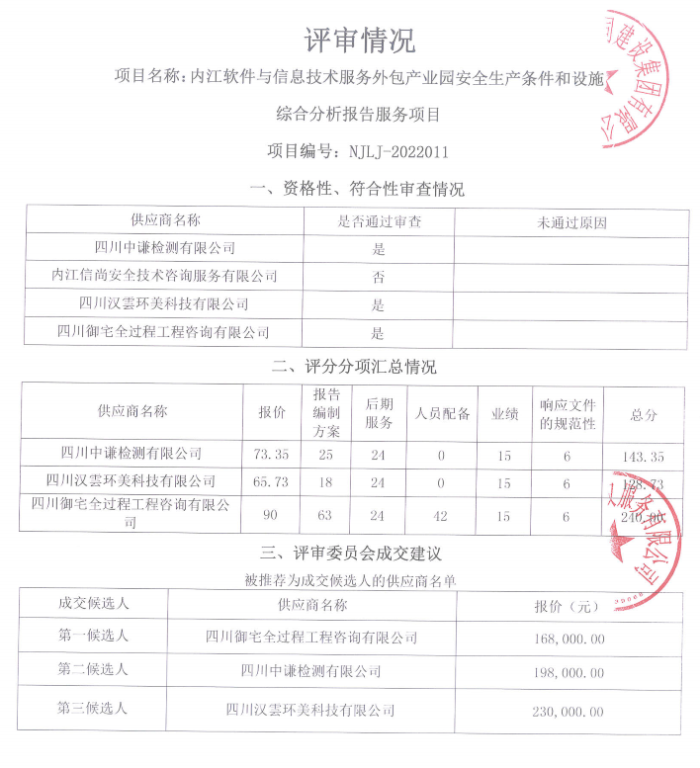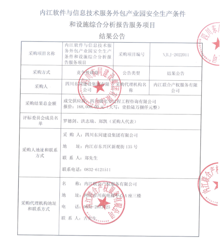 内江软件与信息技术服务外包产业园安全生产条件和设施综合分析报告服务项目结果公告