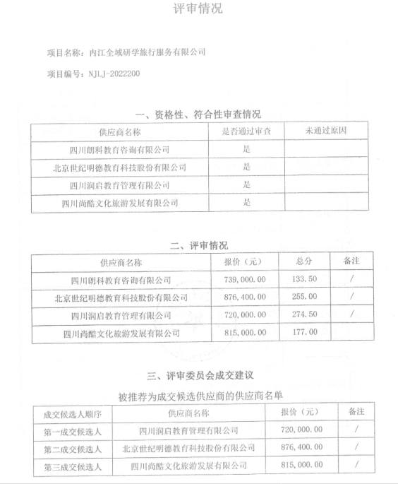 内江市全域研学规划服务采购结果公告