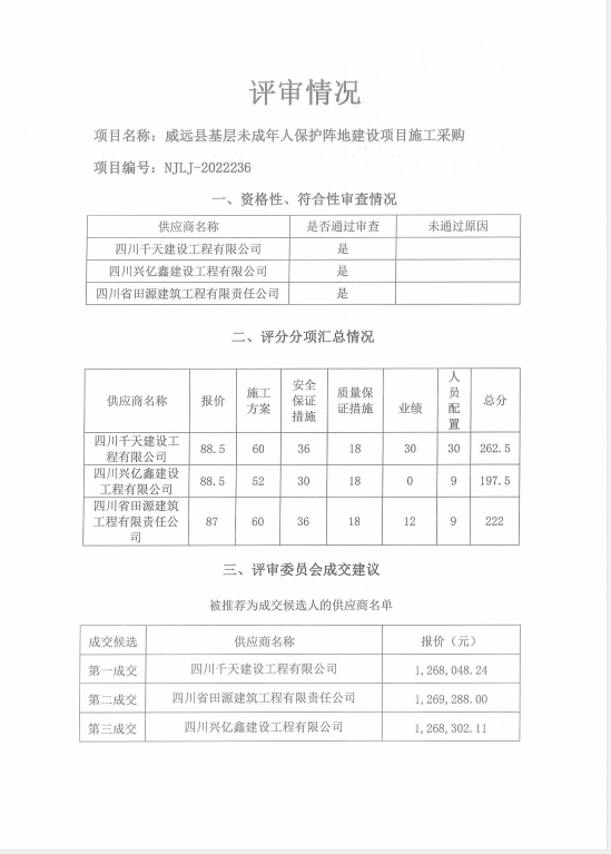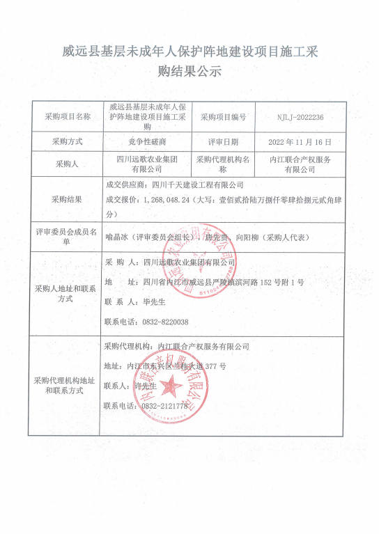威远县基层未成年人保护阵地建设项目施工采购结果公示