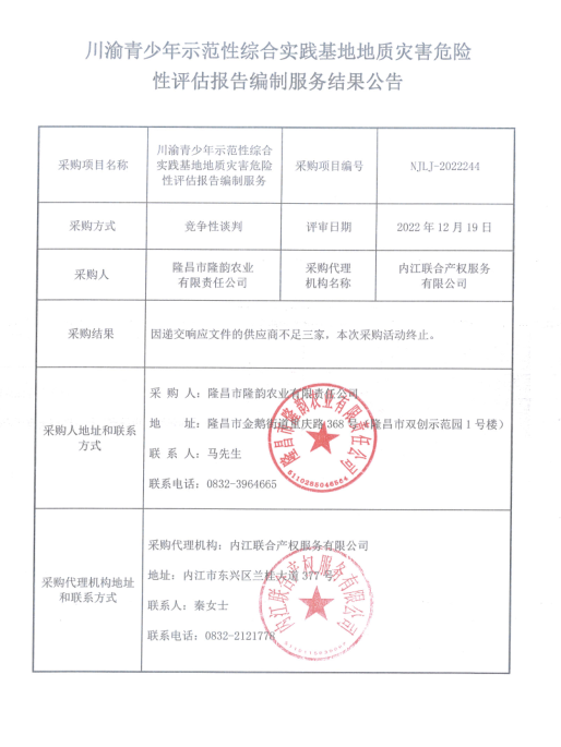川渝青少年示范性综合实践基地地质灾害危险性评估报告编制服务废标公告