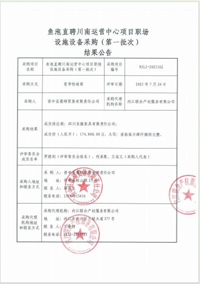 鱼泡直聘川南运营中心项目职场设施设备采购(第二批次)结果公告