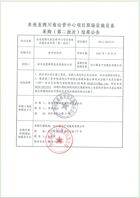 鱼泡直聘川南运营中心项目职场设施设备采购(第二批次)结果公告