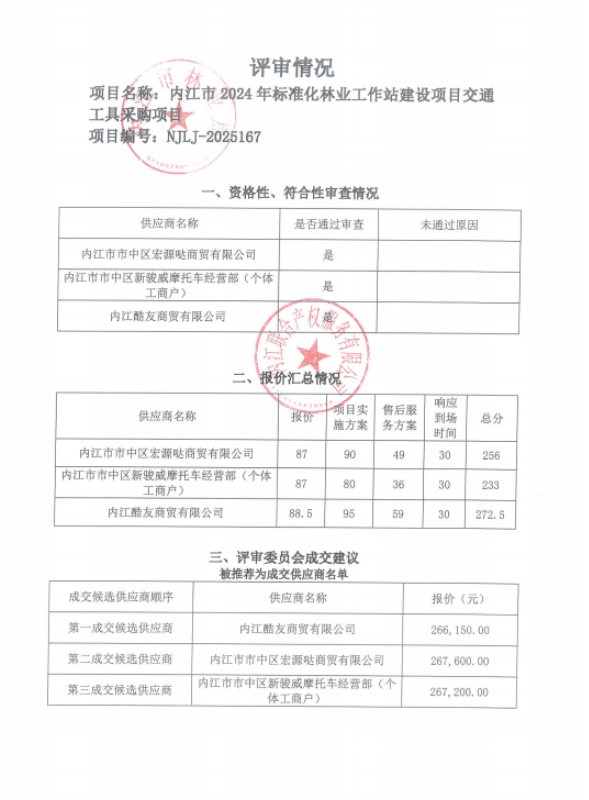 内江市2024年标准化林业工作站建设项目交通工具采购项目结果公告