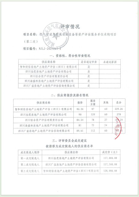 燃气管道及附属设施设备等资产评估服务单位采购项目(第二次)结果公告