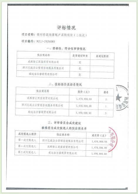 银行存款结算账户采购项目(二批次)结果公告