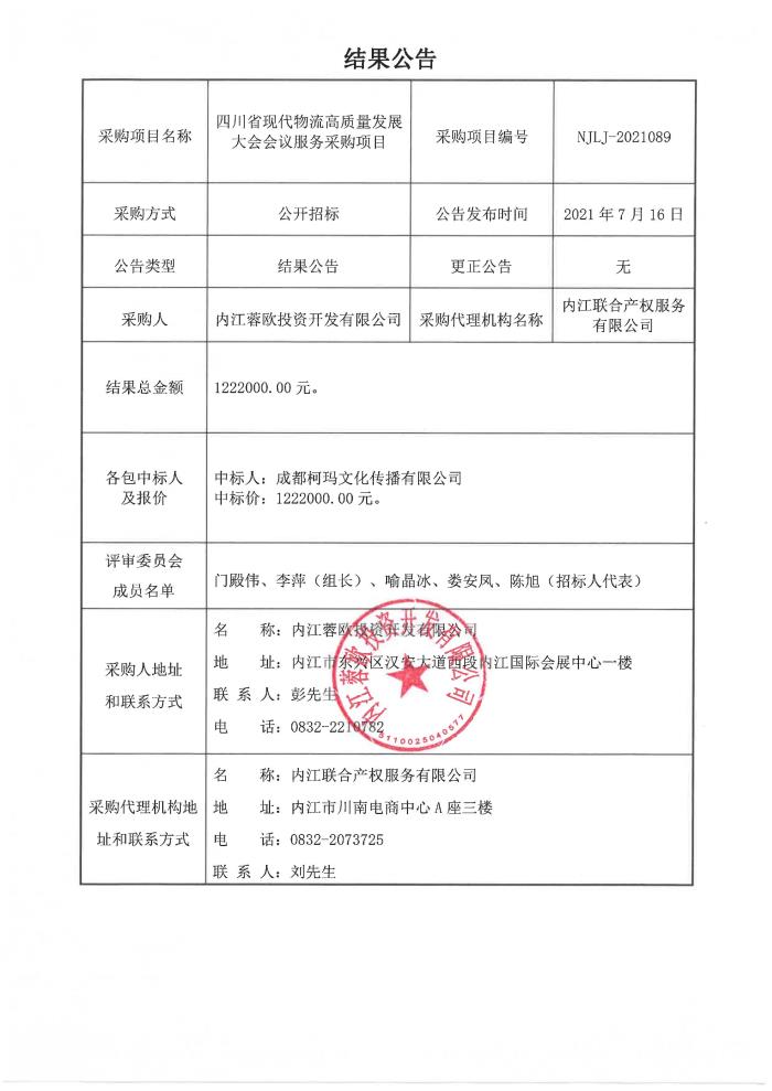 四川省现代物流高质量发展大会会议服务采购项目结果公告