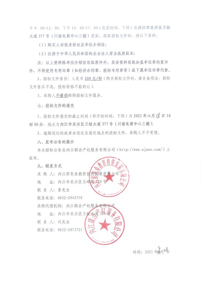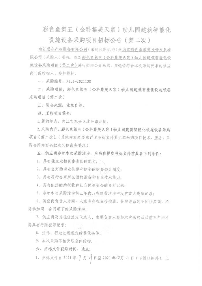 彩色鱼七彩汇托幼园项目建筑智能化设施设备采购项目采购公告(第二次)