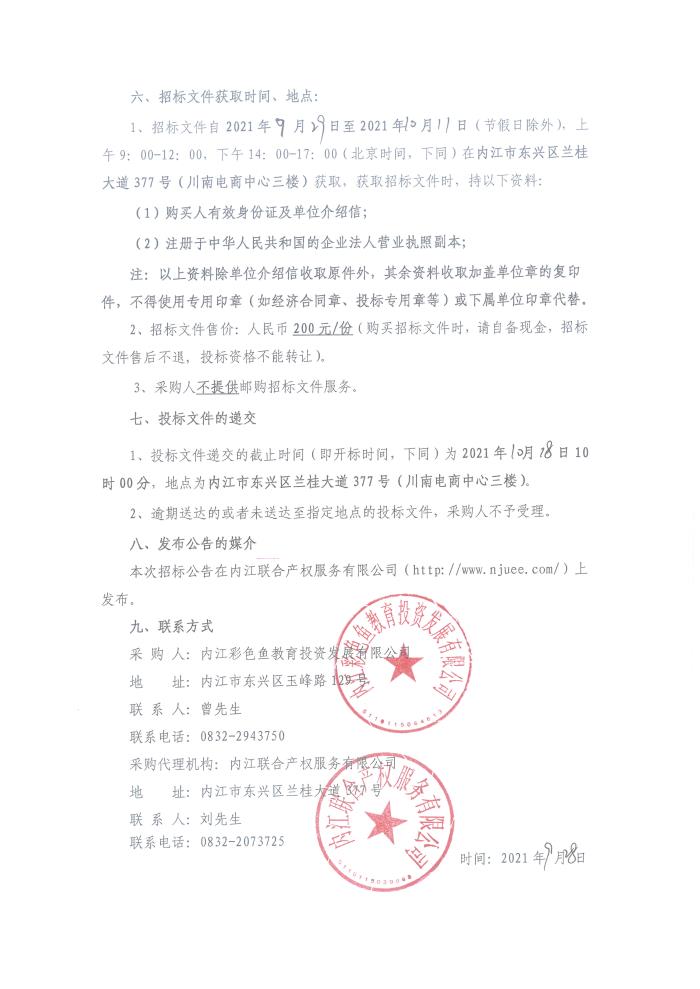 彩色鱼第五(金科集美天宸)幼儿园建筑智能化设施设备采购项目采购公告(第二次)