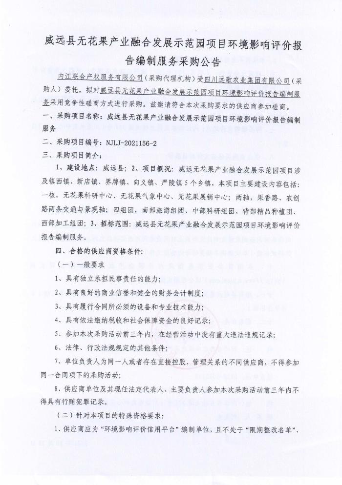 威远县无花果产业融合发展示范园项目环境影响评价报告编制服务采购公告