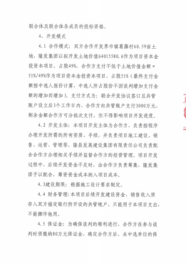 隆昌发展建设集团有限责任公司关于界市镇葛藤村房地产联合开发项目公开招募合作方的公告