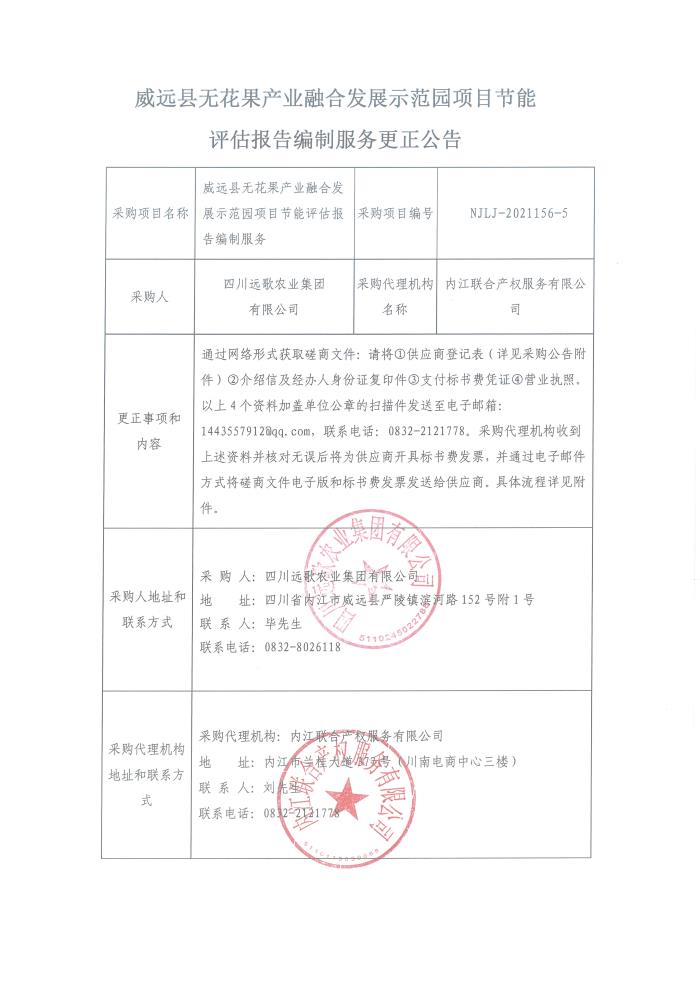 威远县无花果产业融合发展示范园项目节能评估报告编制服务更正公告