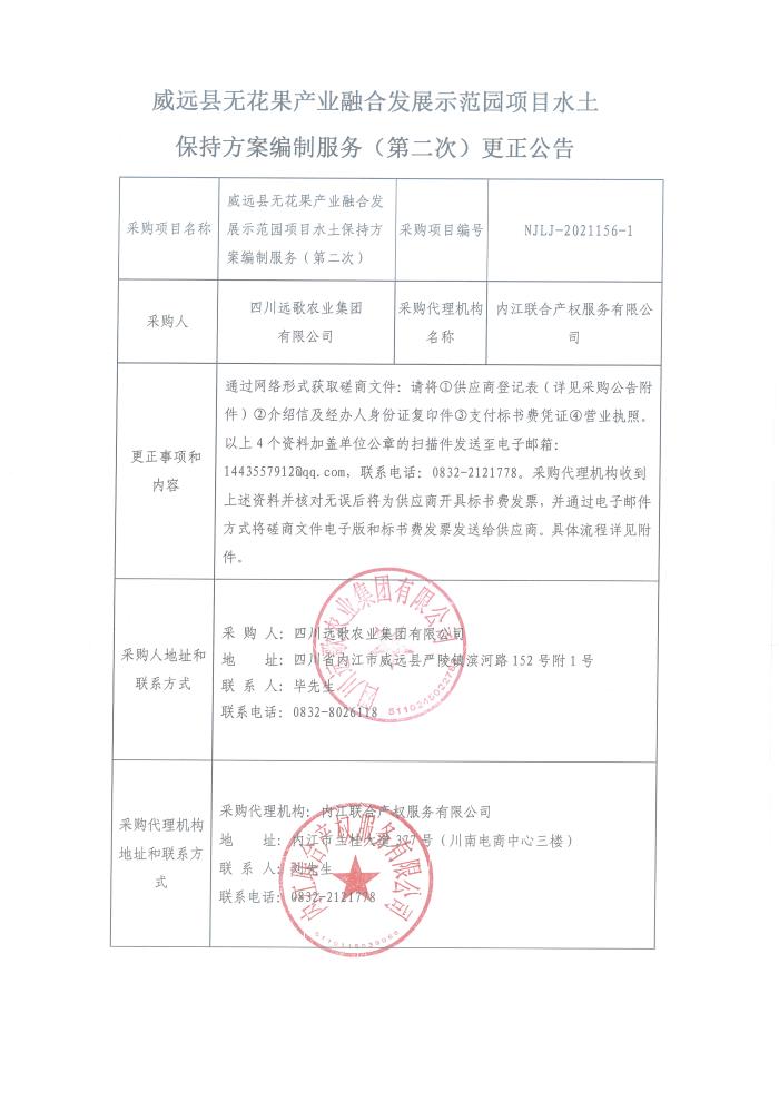 威远县无花果产业融合发展示范园项目水土保持方案编制服务(第二次)更正公告