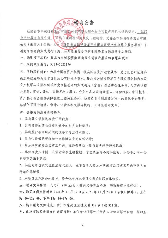 隆昌市兴诚投资集团有限公司资产整合综合服务项目采购公告