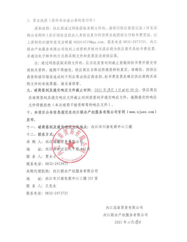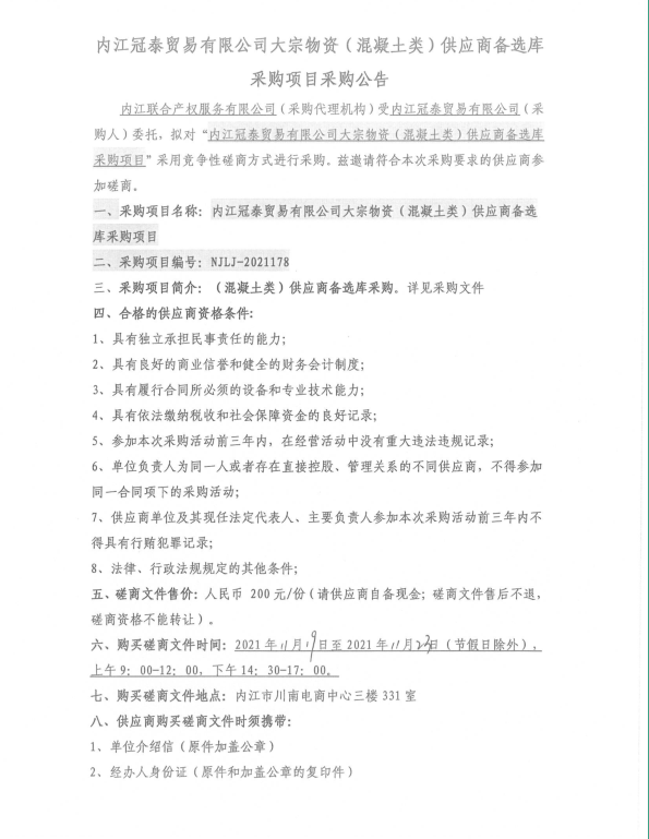 内江冠泰贸易有限公司大宗物资(混凝土类)供应商备选库采购项目采购公告
