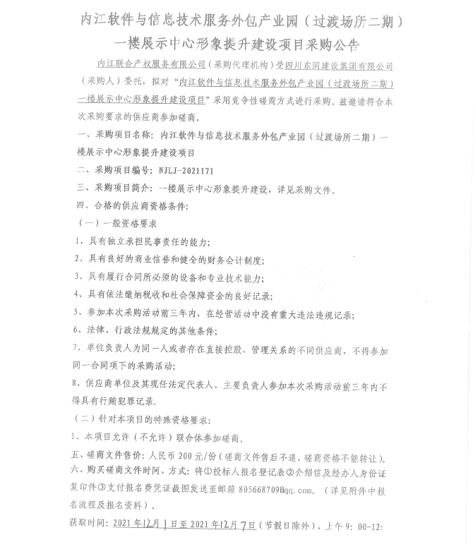内江软件与信息技术服务外包产业园(过渡场所二期)一楼展示中心形象提升建设项目采购公告