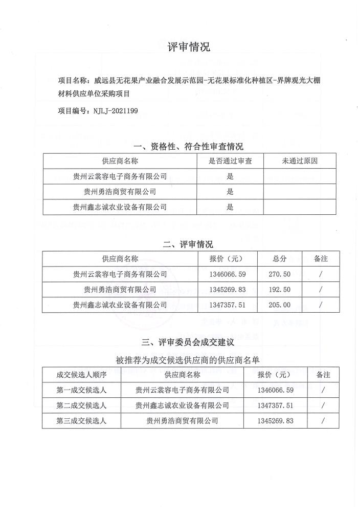 威远县无花果产业融合发展示范园-无花果标准化种植区-界牌观光大棚材料供应单位采购项目结果公告