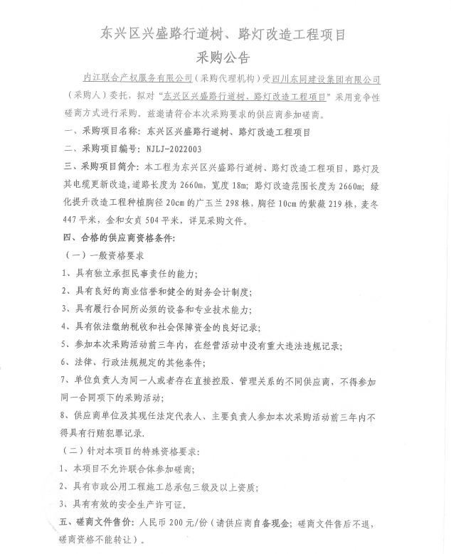 东兴区兴盛路行道树、路灯改造工程项目采购公告
