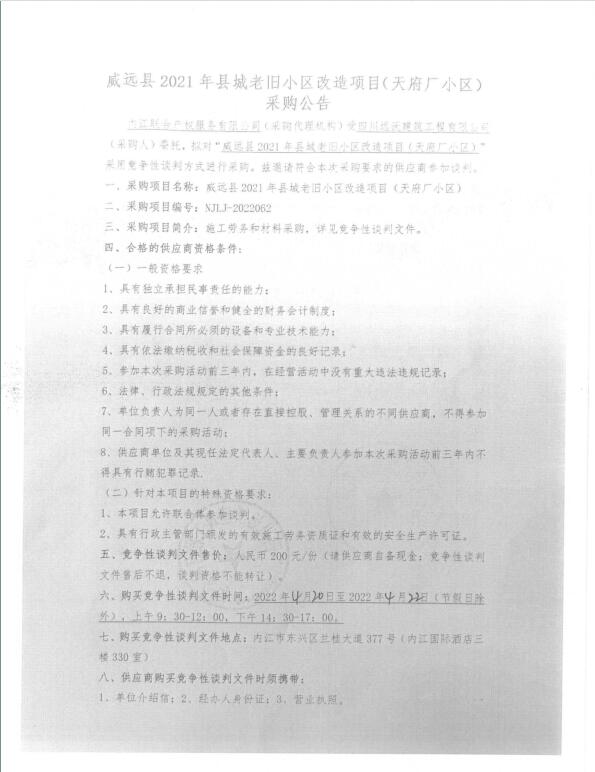 威远县2021年县城老旧小区改造项目(天府厂小区)采购公告