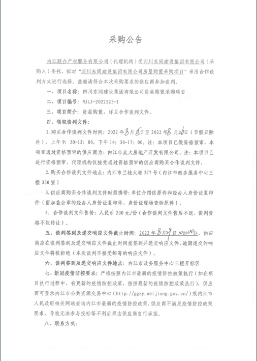 四川东同建设集团有限公司房屋购置采购项目采购公告