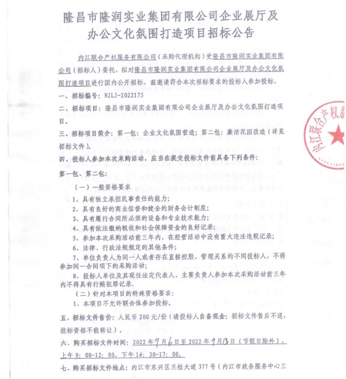 隆昌市隆润实业集团有限公司企业展厅及办公文化氛围打造项目招标公告