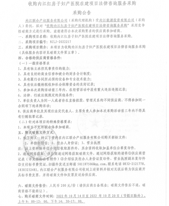 收购内江红房子妇产医院在建项目法律咨询服务采购公告