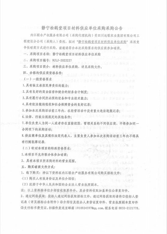 静宁松鹤堂项目材料供应单位采购采购公告