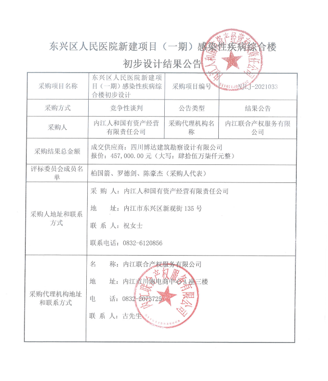 东兴区人民医院新建项目(一期)感染性疾病综合楼初步设计结果公告