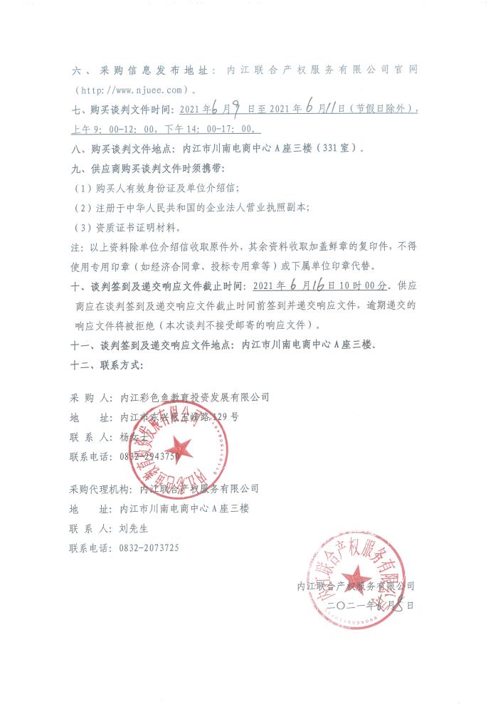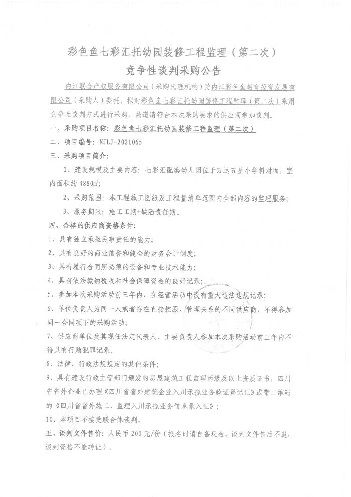 彩色鱼七彩汇托幼园装修工程监理竞争性谈判采购公告(第二次)
