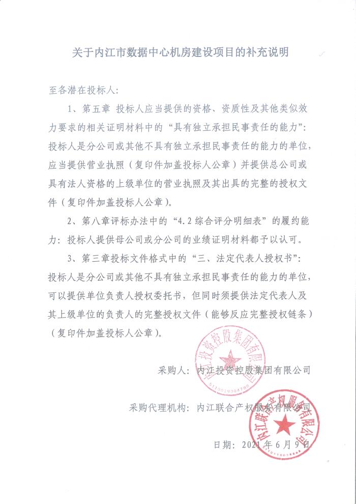 关于内江市数据中心机房建设项目的补充说明