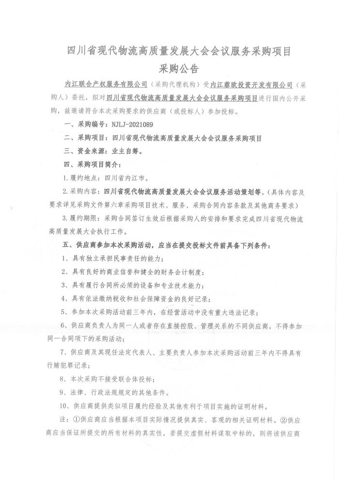 四川省现代物流高质量发展大会会议服务采购项目采购公告