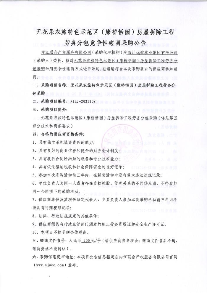 无花果农旅特色示范区(康桥恬园)房屋拆除工程劳务分包采购公告