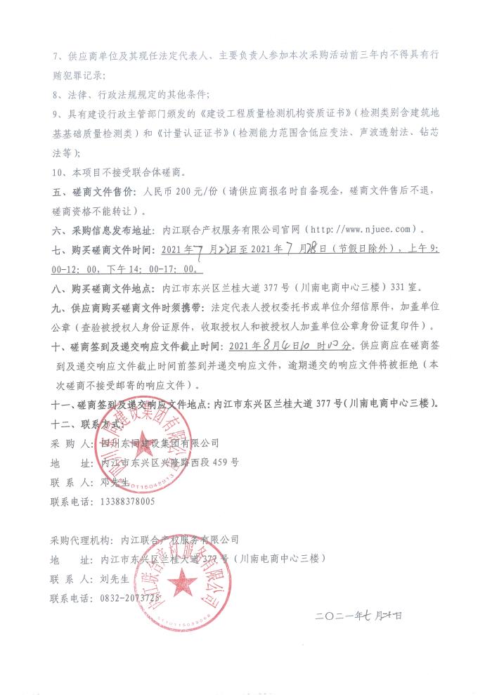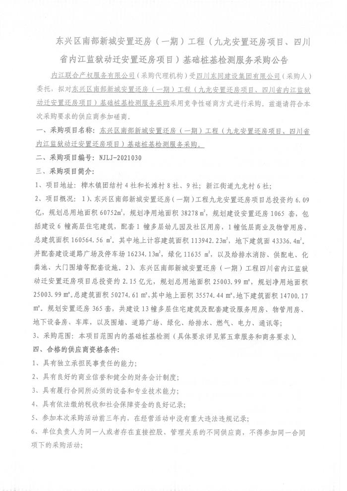 东兴区南部新城安置还房(一期)工程(九龙安置还房项目、四川省内江监狱动迁安置还房项目)基础桩基服务采购公告