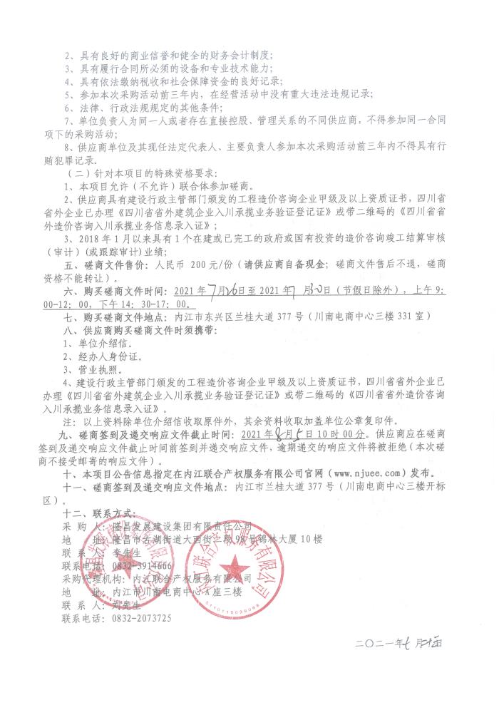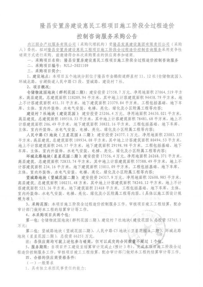 隆昌安置房建设惠民工程项目施工阶段全过程造价控制咨询服务采购公告