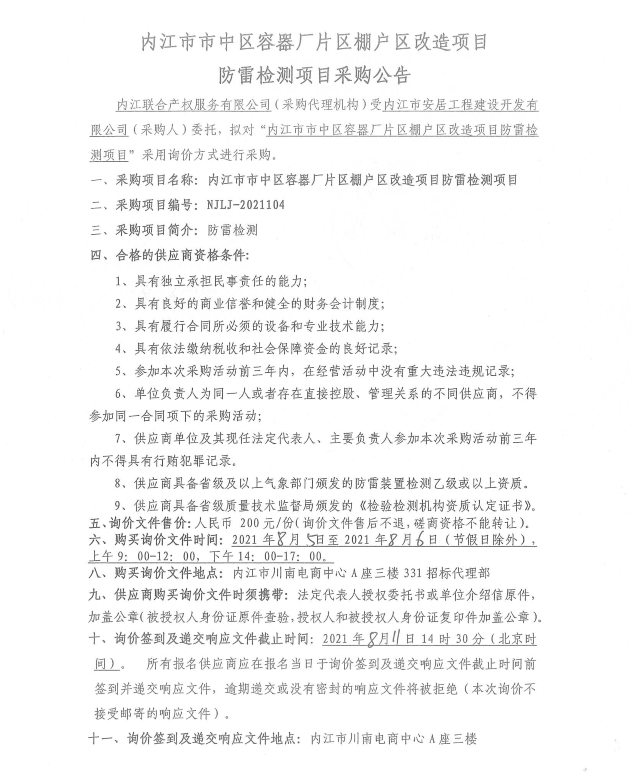 内江市市中区容器厂片区棚户区改造项目防雷检测项目采购公告