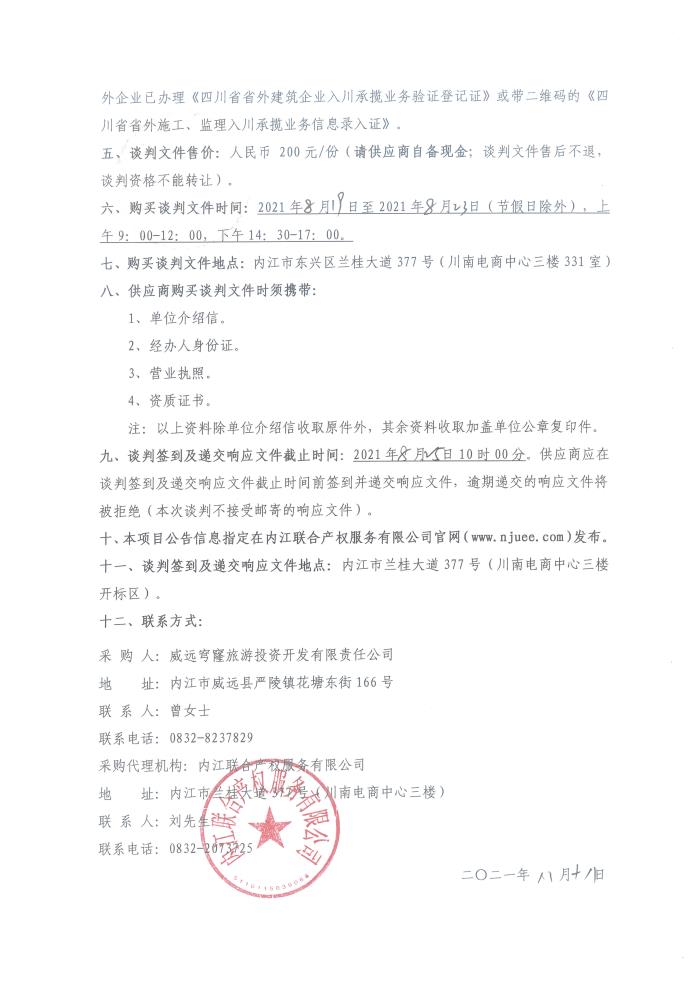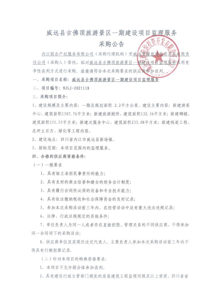 威远县古佛顶旅游景区一期建设项目监理服务采购公告