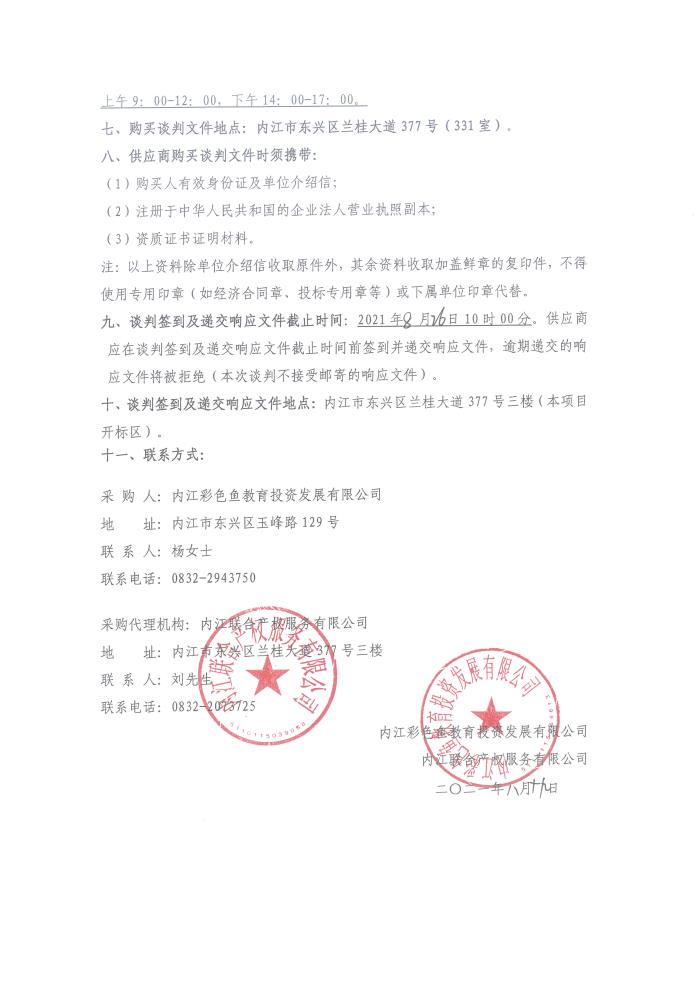 彩色鱼第五(金科集美天宸)幼儿园装饰工程监理采购公告