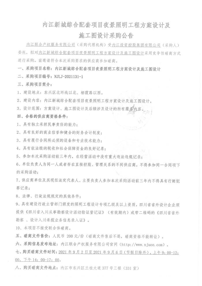 内江新城综合配套项目夜景照明工程方案设计及施工图设计采购公告