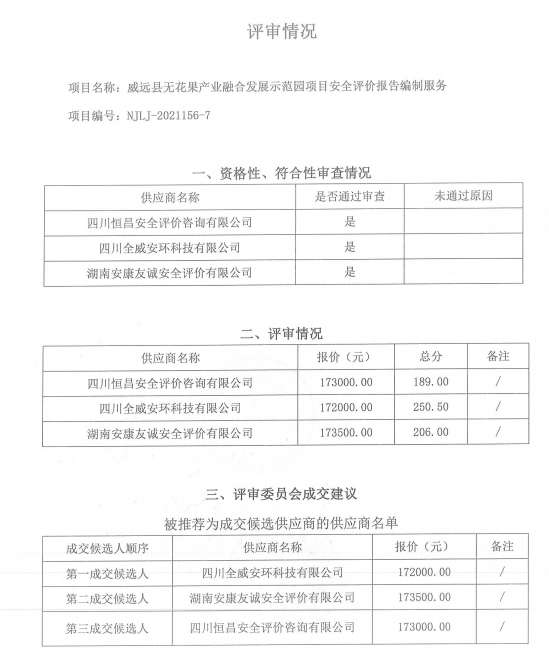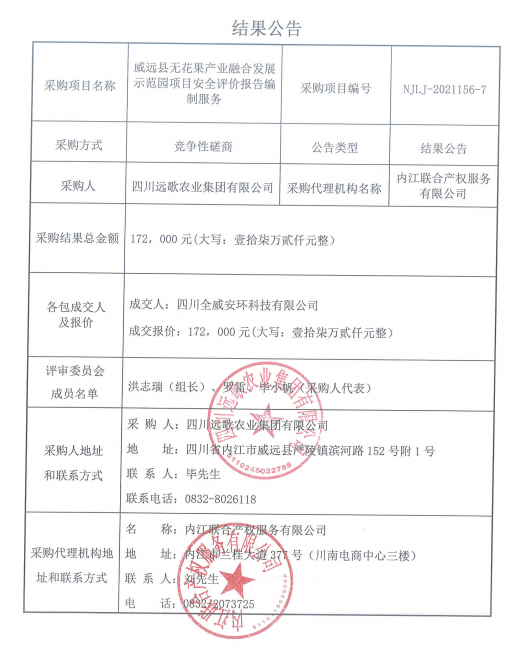 威远县无花果产业融合发展示范园项目安全评价报告编制服务结果公告