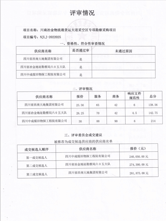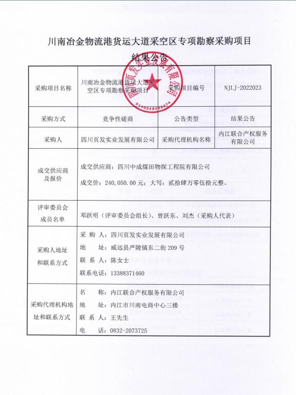 川南冶金物流港货运大道采空区专项勘察采购项目结果公告