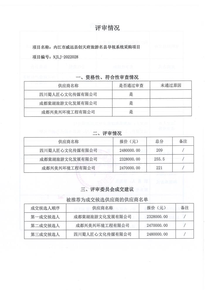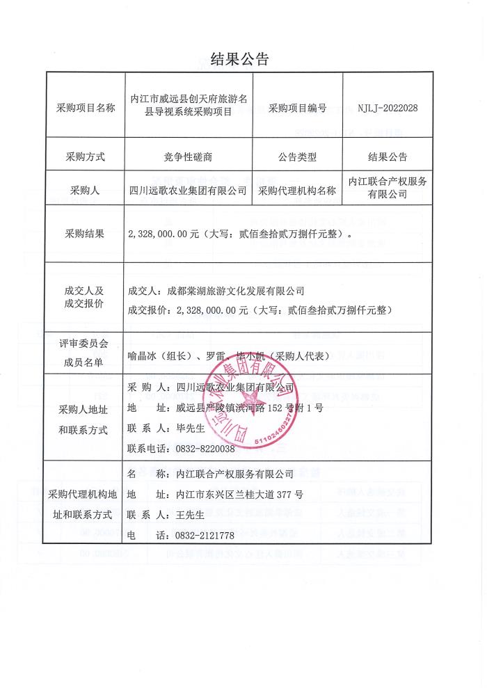 内江市威远县创天府旅游名县导视系统采购项目结果公告