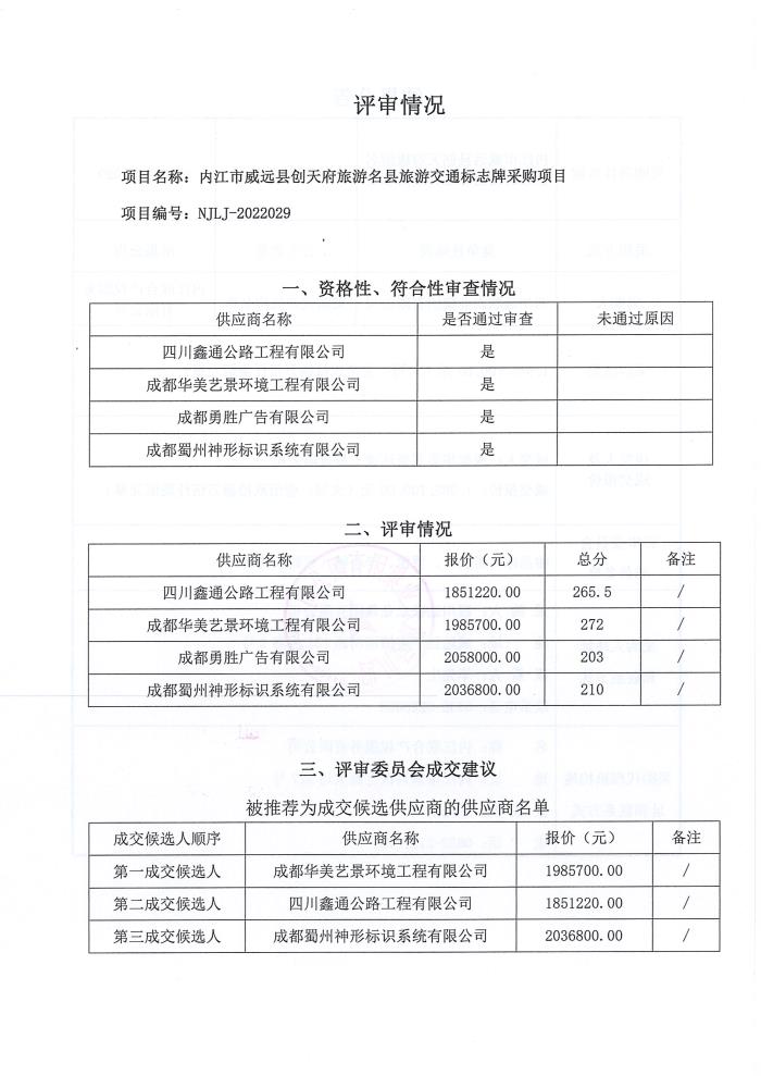 内江市威远县创天府旅游名县旅游交通标志牌采购项目结果公告
