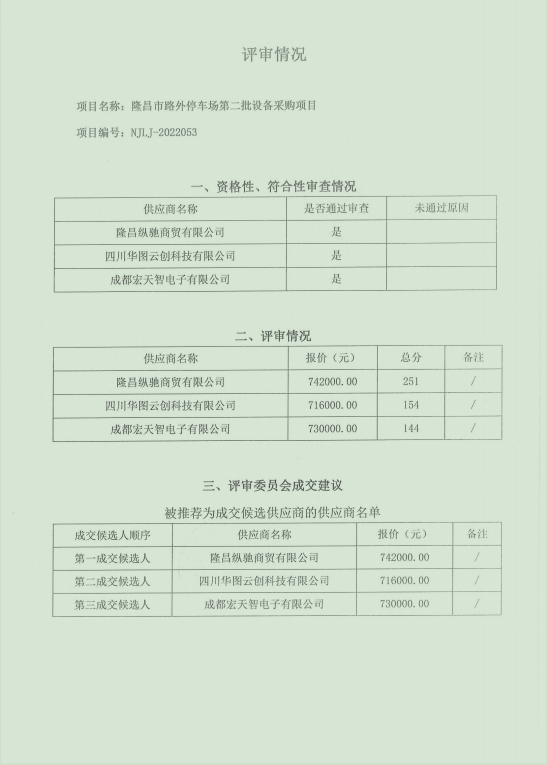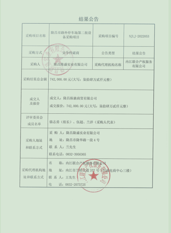 隆昌市路外停车场第二批设备采购项目结果公告