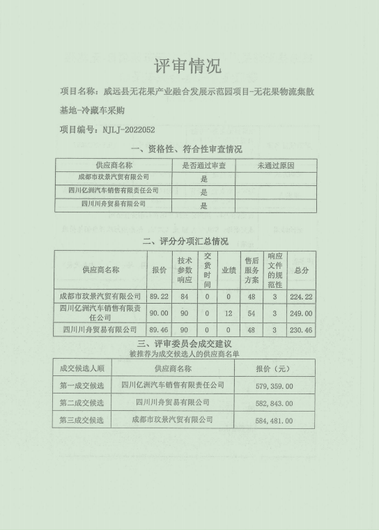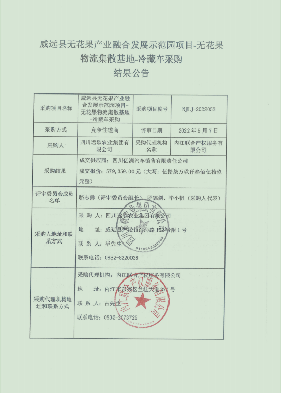 威远县无花果产业融合发展示范园项目-无花果物流集散基地-冷藏车采购结果公告