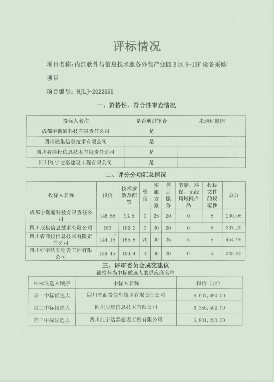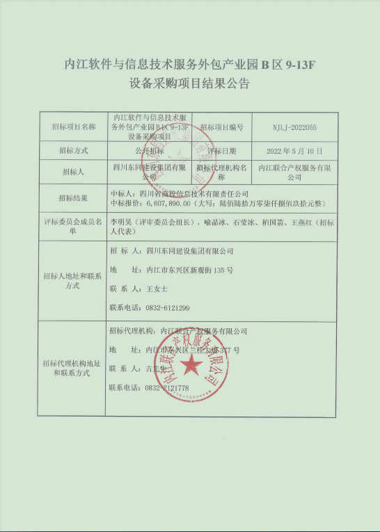 内江软件与信息技术服务外包产业园B区9-13F设备采购项目结果公告