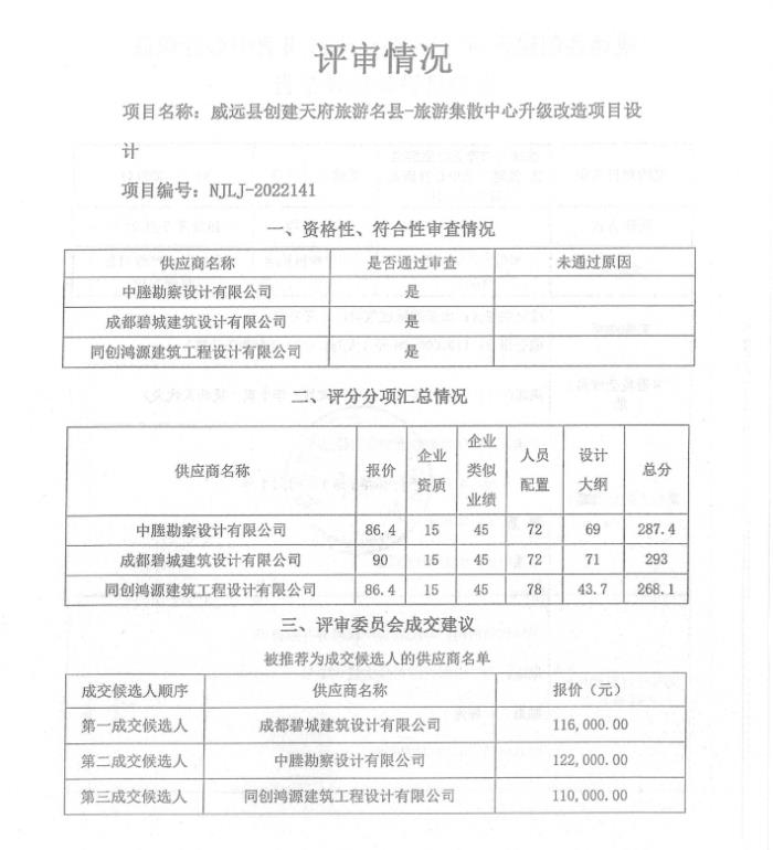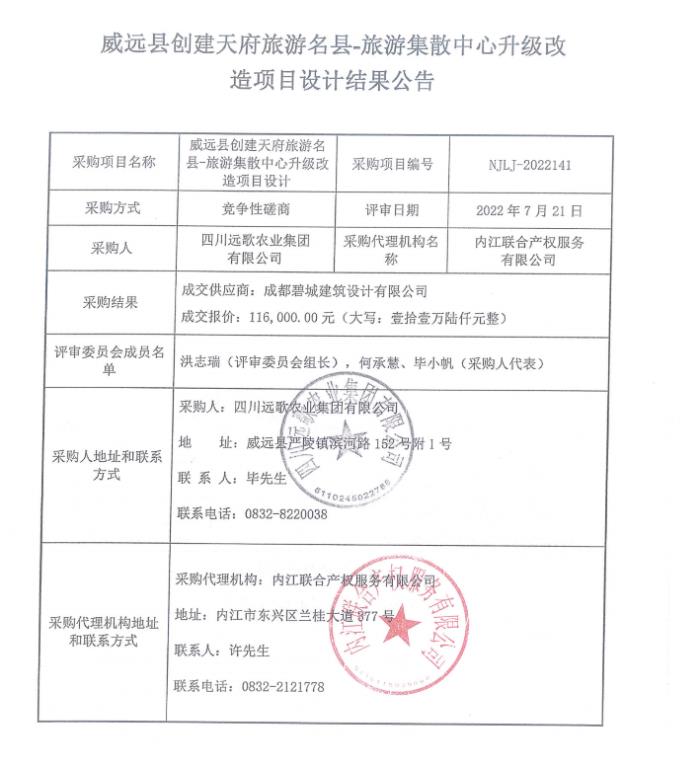 威远县创建天府旅游名县-旅游集散中心升级改造项目设计结果公告